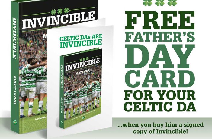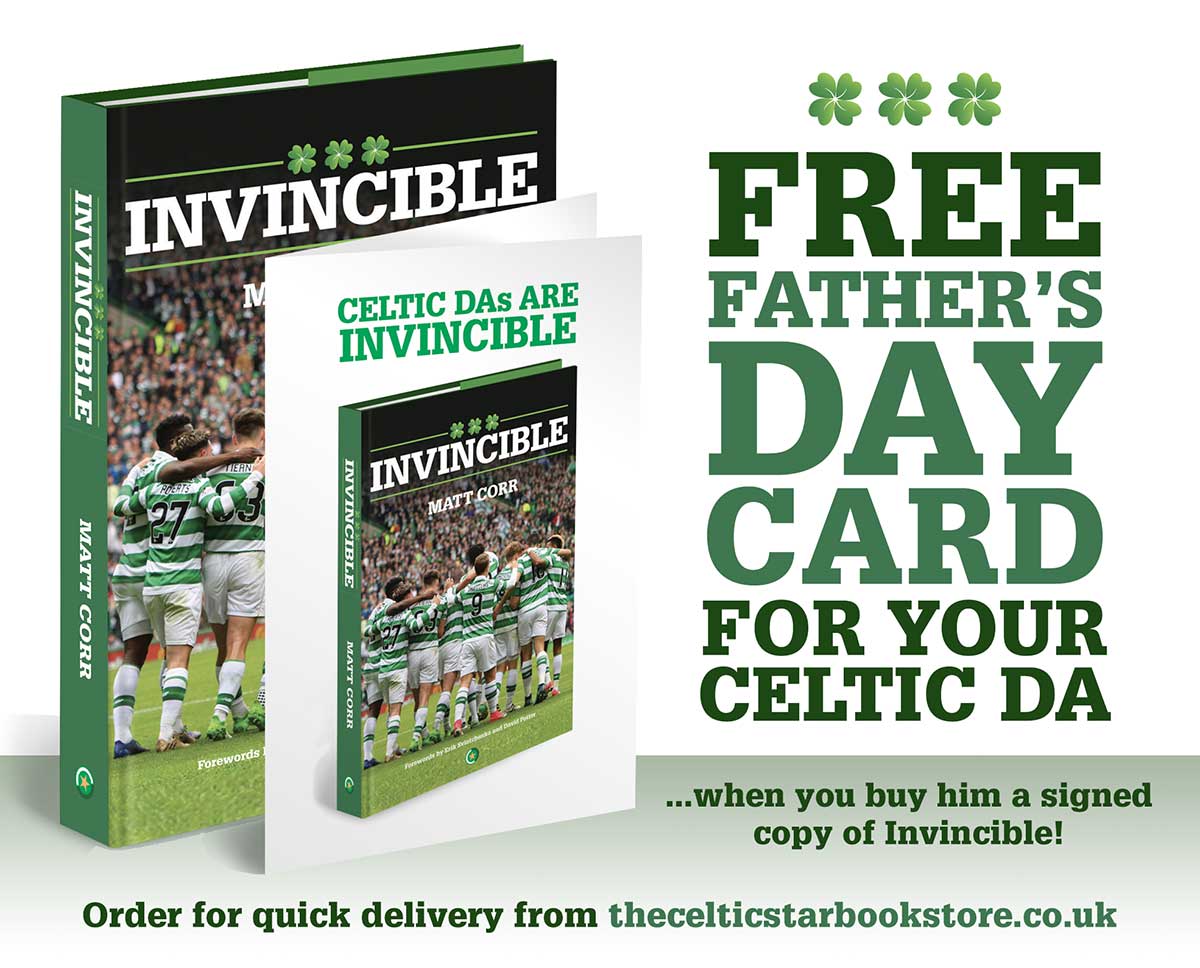 Order Matt Corr’s INVINCIBLE for Father’s Day on 21 June – you’ll receive a signed copy and a Father’s Day card with envelope for your Celtic Da’…speedy delivery guaranteed. Order at thecelticstarbookstore.co.uk