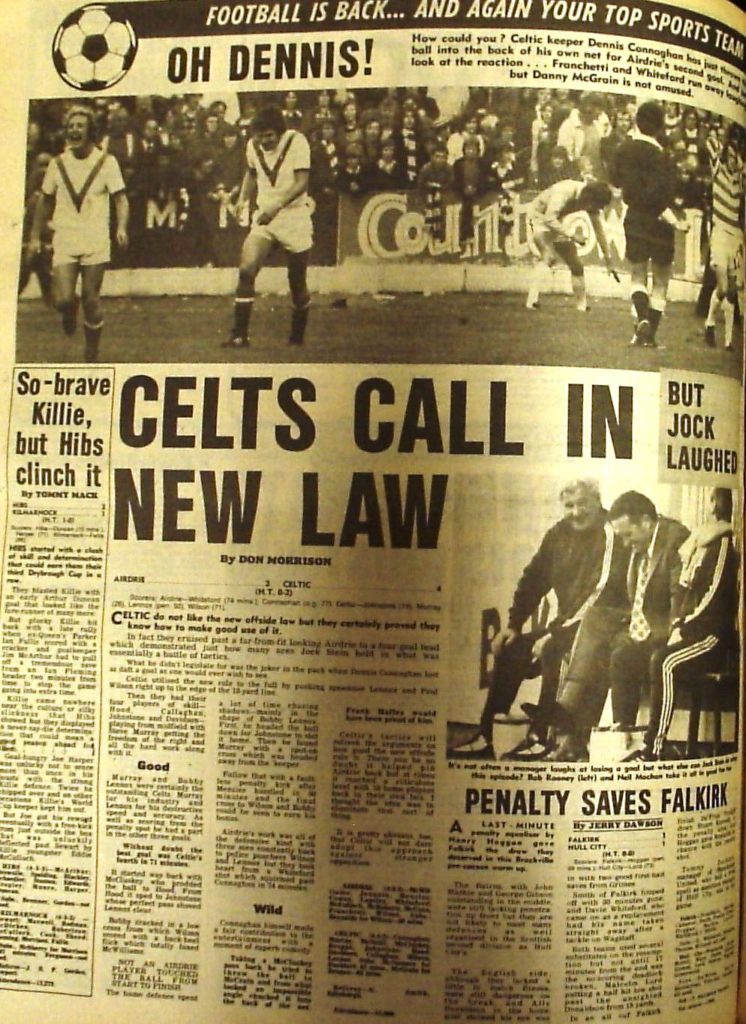 Celtic started the season in good form. Hardly a game of football – more a training exercise – which Airdrie were quite happy to admit to – with a silly offside rule which Celtic fully exploited.