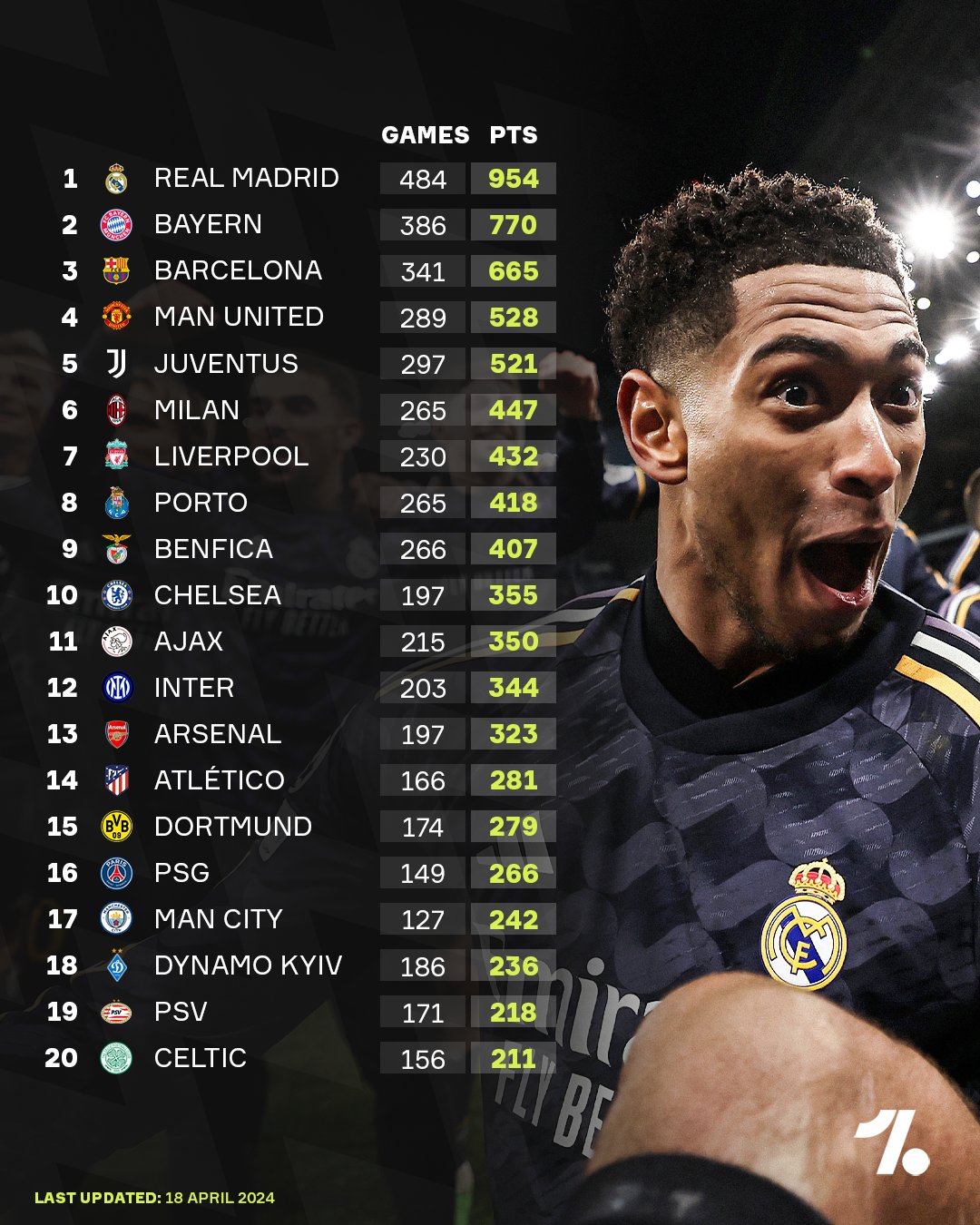 The Champions League ALL-TIME table 👀 pic.twitter.com/5McoMR1RGG