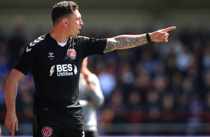 Fleetwood Town manager Scott Brown applauds the fans after the Emirates FA Cup Second Round match between Ebbsfleet United and Fleetwood Town at Stonebridge Road on November 27, 2022. (Photo by Henry Browne/Getty Images)