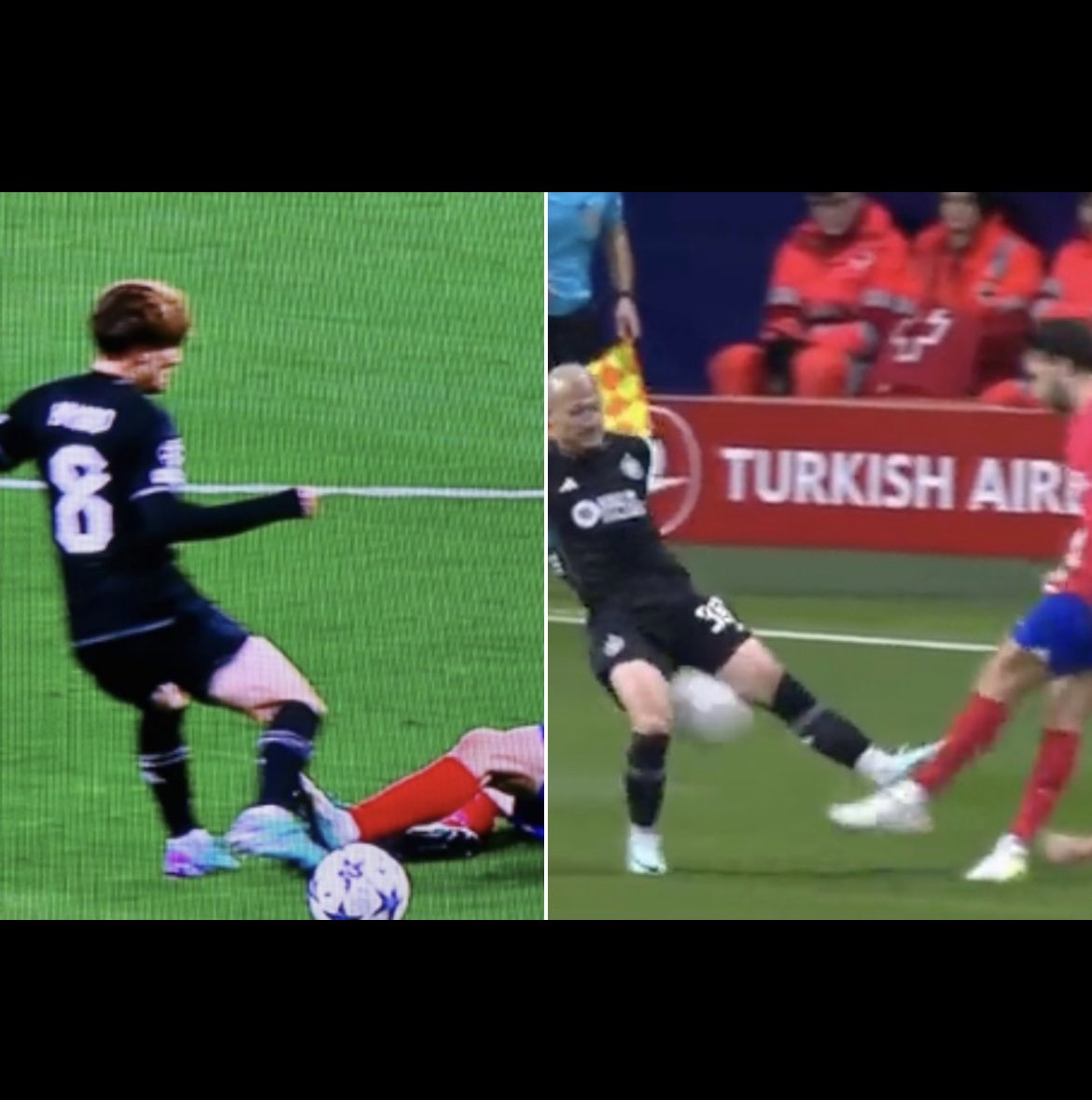 VAR instructed the referee, who was positioned to see the incident and decided to book Maeda, to look at the monitor, slow it down and take a still from the contact. It was the reactions from the Atletico players that pressured the referee and VAR to consider the red card; however, there was no such reaction when Greg Taylor and Kyogo were crunched warranting no intervention. There never is from Celtic players in recent years.