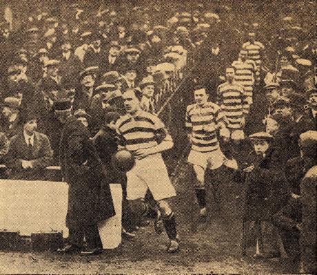 After twenty minutes’ play, the issue was decided. The Hibernians had thrown back a Celtic attack, but it came again, and a fine cross by Macfarlane tempted Harper from his goal, It was an awkward situation to deal with, for Cassidy was running in. The Hibernian goalkeeper appeared to have mistimed his effort, and, in addition, the bounce of the ball was awkward for him.