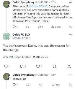 However, the kick-off time has been rescheduled after Motherwell made a request to the league. This was confirmed by Celtic SLO, John Paul Taylor, who was able to speak to the reason for the request.