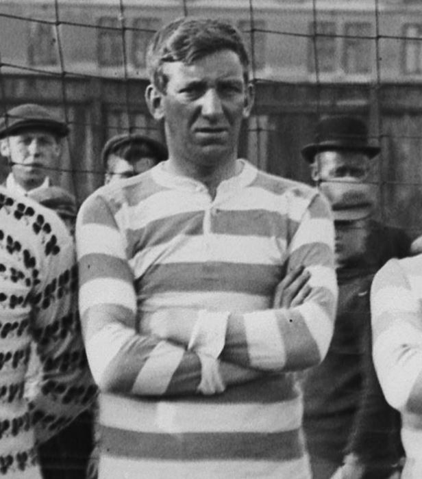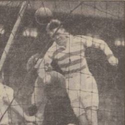 John Conway, who Celtic signed from Glencraig Juniors in 1940.He was an inside-right & is pictured winning a header against Hamilton on the opening day of 1940/41 season (2-2 draw)