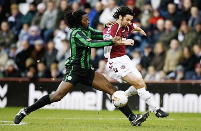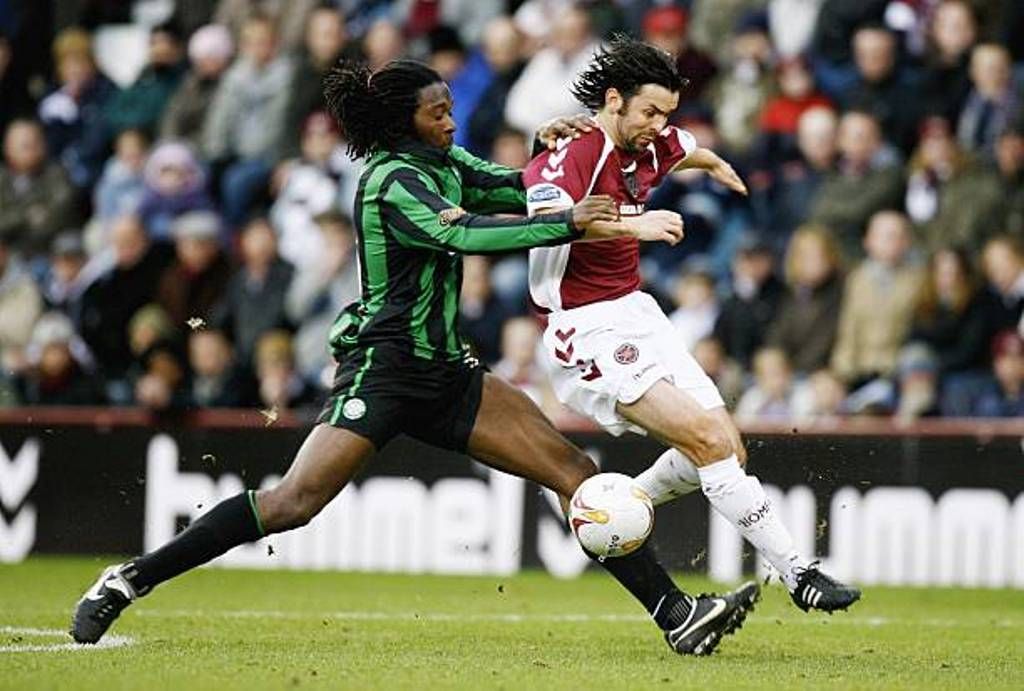 Jiri Jarosik (right) rides the challenge from Hearts winger Neil McCann