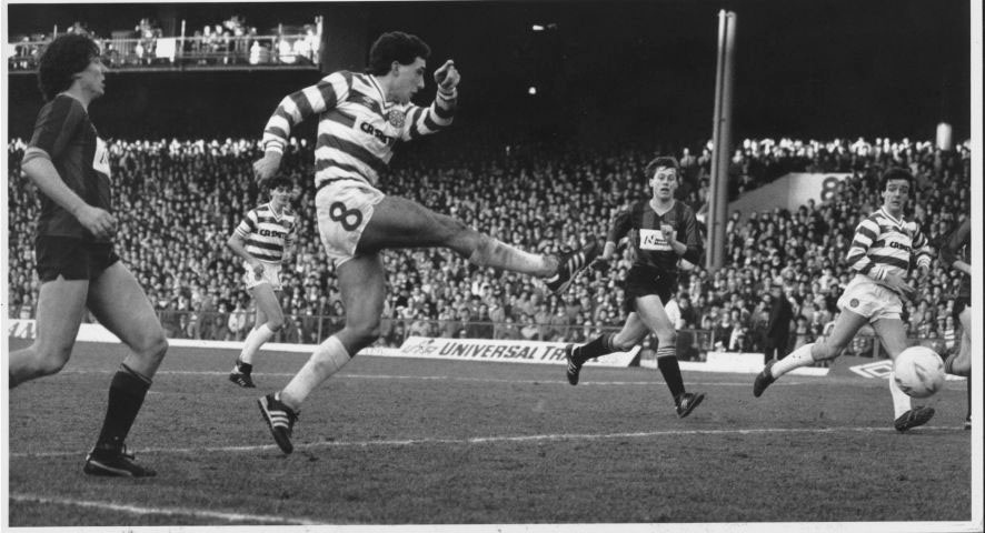 SATURDAY 16 FEBRUARY 1985 – Celtic, without much bother, beat Inverness Thistle (this was before the amalgamation of Thistle and Caley) 6-0 at Celtic Park in the Scottish Cup with a hat-trick from Paul McStay and one goal each from Maurice Johnston, Murdo MacLeod and Frank McGarvey. Celtic supporters in the Jungle, happy with the news that Rangers are losing to Dundee, will Inverness to score a goal but Celtic’s defence stubbornly hold out, and the referee refuses to give them a penalty.