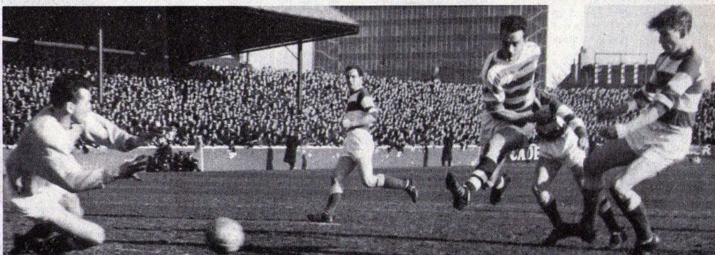 SATURDAY 19 MARCH 1966 – With every point and every goal vital in the race for the Championship, Celtic are merciless in their 7-1 beating of Hamilton Accies at Douglas Park with two goals from McBride (one a penalty), two from Johnstone and one each from Steve Chalmers, Bobby Lennox and Bertie Auld.