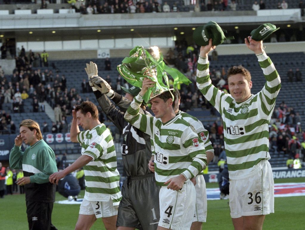 SUNDAY 19 MARCH 2000 – Following a disastrous season which has seen a Scottish Cup exit to Inverness Caledonian Thistle and the consequent sacking of manager John Barnes, Celtic, under the temporary management of Kenny Dalglish, do at least regain some self respect by winning the Scottish League Cup for the 11th time. They do this by beating Aberdeen, a team in even more disarray than Celtic, 2-0 at Hampden before 50,073 fans. The goals are scored by Vidar Riseth and Tommy Johnson, and this spring day does, if nothing else, give the long suffering Celtic fans something to smile about.