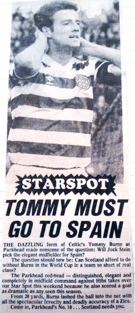 SATURDAY 1st MAY 1982 – In a game played in intermittent hail and sleet, Celtic take a huge step towards the Scottish League championship with a 6-0 defeat of Hibs before a disappointing crowd of only 16,064 at Celtic Park. Murdo MacLeod scores two and the other goals are scored by Danny Crainie, George McCluskey, Roy Aitken and Tommy Burns. World events divert attention from this fine victory, for the Falklands War is beginning to build to a climax. The BBC’s football programme that night, for example, interrupted by a report of an air raid on a ship.