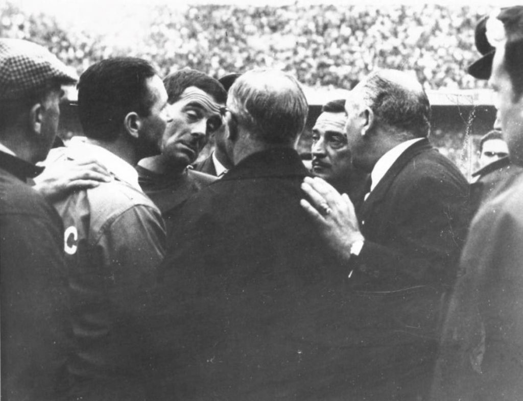 WEDNESDAY 1st NOVEMBER 1967 – Goalkeeper Ronnie Simpson is felled by a missile before the game even starts in Buenos Aires in the World Club Championship second leg. His place is taken by John Fallon who plays well but cannot stop Racing winning 2-1, which necessitates a play-off in neutral Uruguay on Saturday. Such is the unpleasantness in this game that Chairman Bob Kelly wants to go home without going to Uruguay. In retrospect, it is a pity he did not do this.