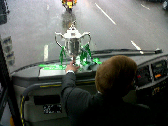 SATURDAY 21st MAY 2011 – A great day for Celtic as they win the Scottish Cup for the 35th time in a rather one-sided 3-0 defeat of Motherwell. A feature of the day is the “huddle” done by all the support near the end of the game. The goals were scored by Ki, an own goal and then a well-drilled free-kick from Charlie Mulgrew. It is a good compensation for the loss of the SPL.