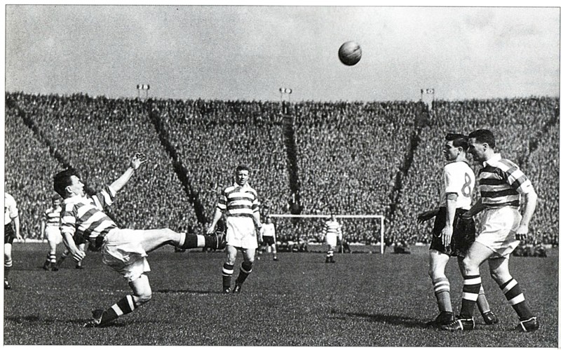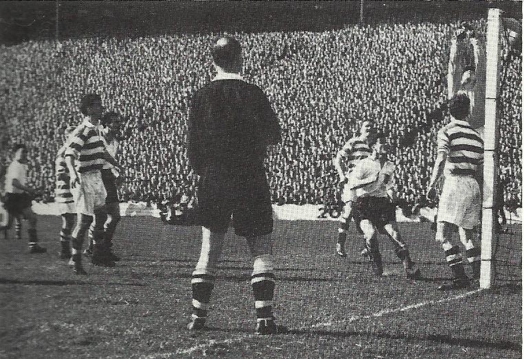 SATURDAY 23rd APRIL 1955 – It is a Celtic horror show as goalkeeper John Bonnar makes a hash of a corner-kick in the last minute to allow Clyde a last minute equaliser in the Scottish Cup final. Earlier, Jimmy Walsh had scored and Celtic had rarely been troubled. 106,234 attend in spite of the fact that the game was televised live – the first Scottish domestic game ever to be televised. Kenneth Wolstenholme, a closet admirer of Celtic on many occasions, is the commentator.
