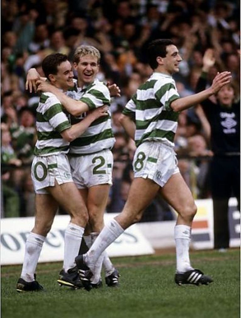 Celtic goalscorer Andy Walker (left) is congratulated by team-mate Chris Morris.
