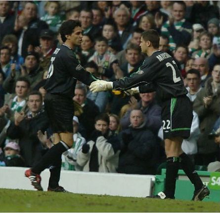 23/02/03 TENNENT’S SCOTTISH CUP CELTIC v ST. JOHNSTONE Celtic’s Javier Sanchez Broto is replaced by young goalkeeper David Marshall.