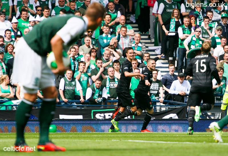 SUNDAY 26th MAY 2013 – In the only Scottish Cup final ever played on a Sunday, Celtic in spite of playing in a hideous black strip win the Scottish Cup for the 35th time by beating Hibs 3-0. Gary Hooper scores twice in the first half but can’t quite join the ranks of Dixie Deans and Jimmy Quinn by scoring a Cup final hat-trick as Joe Ledley scores the third.