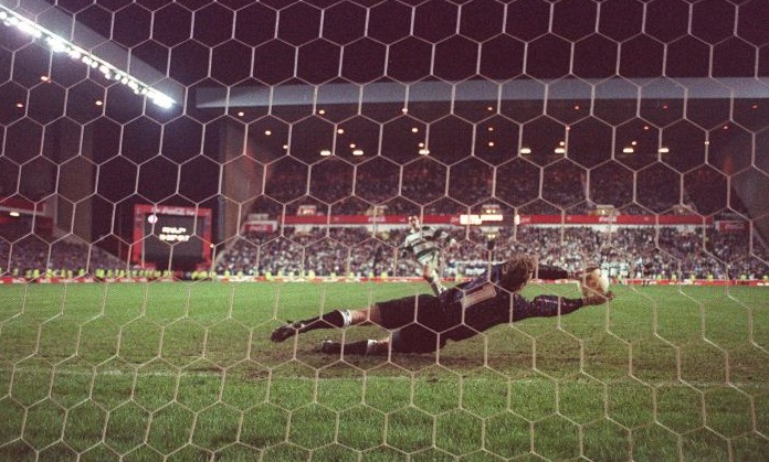 SUNDAY 27 NOVEMBER 1994 – One of Celtic’s worst ever days as they lose the Scottish League Cup Final to an incredulous Raith Rovers before 45,384 fans at Ibrox. Andy Walker had equalized Raith Rovers’ opening counter, and then Charlie Nicholas scores what looks like a late winner. But Gordon Marshall cannot hold a Jason Dair shot, and Gordon Dalziel is there to head home the equalizer. No goals are scored in extra time, and then Paul McStay, by some distance the best player on the park, has the misfortune to have his penalty saved by Scott Thomson in the penalty shoot-out.