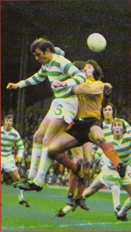 Not a great day weather wise but two good headed goals from Kenny Dalglish and Roddie MacDonald from Bobby Lennox crosses are enough to give Celtic a 2-1 win over Dundee United today. Both teams have off the field issues. Dundee United have just sold Andy Gray to the distress of their fans, and George Connelly has just walked out on Celtic yet again – something that is proving rather tiresome to acting Manager Sean Fallon. Meanwhile Jock Stein continues to make slow progress after his motor car accident in the summer.