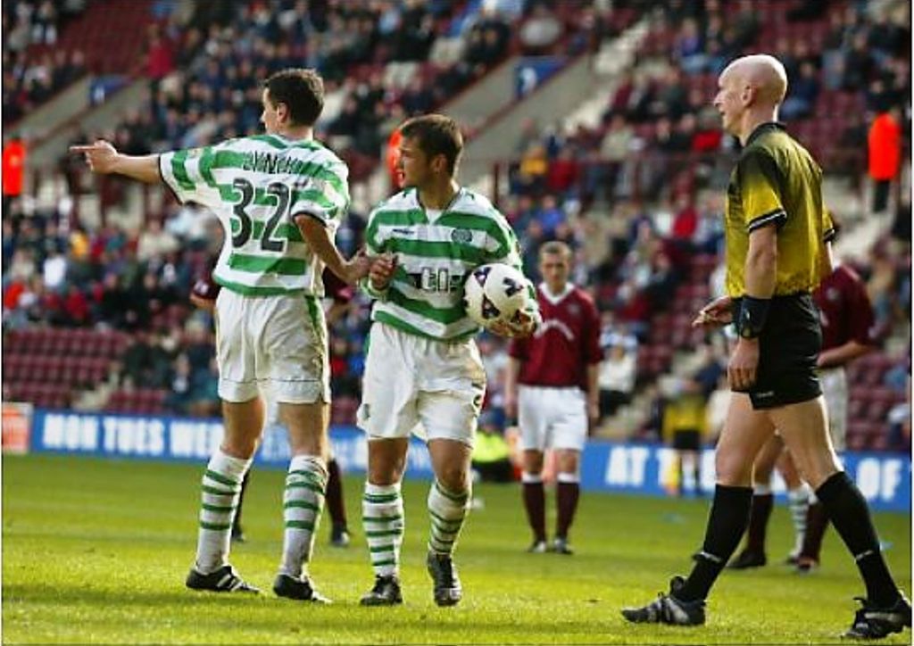 SUNDAY 28th APRIL 2002 – The League has been well won weeks ago, but Celtic beat Hearts 4-1 at Tynecastle. Youngsters Shaun Maloney and Simon Lynch score two each. The game ends with an undignified squabble about who is to take a last minute penalty which would give either Maloney or Lynch a hat-trick. Maloney wins the argument, but them misses the penalty to general hilarity.