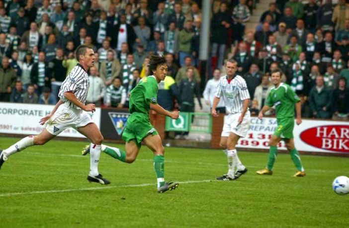 Celtic travel to East End Park, Dunfermline and win 4-0 with two goals from Maciej Zurawski and one each from John Hartson and Shunsuke Nakamura. Celtic were wearing a pleasing all lime green strip, and Zurawski and Nakamura’s goals were their first for the club.