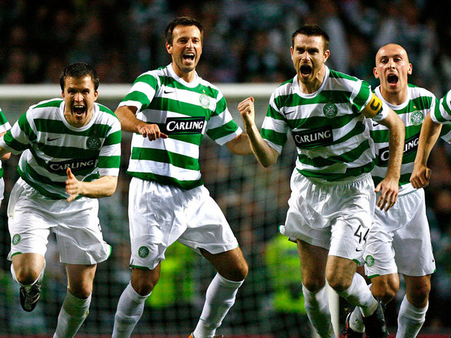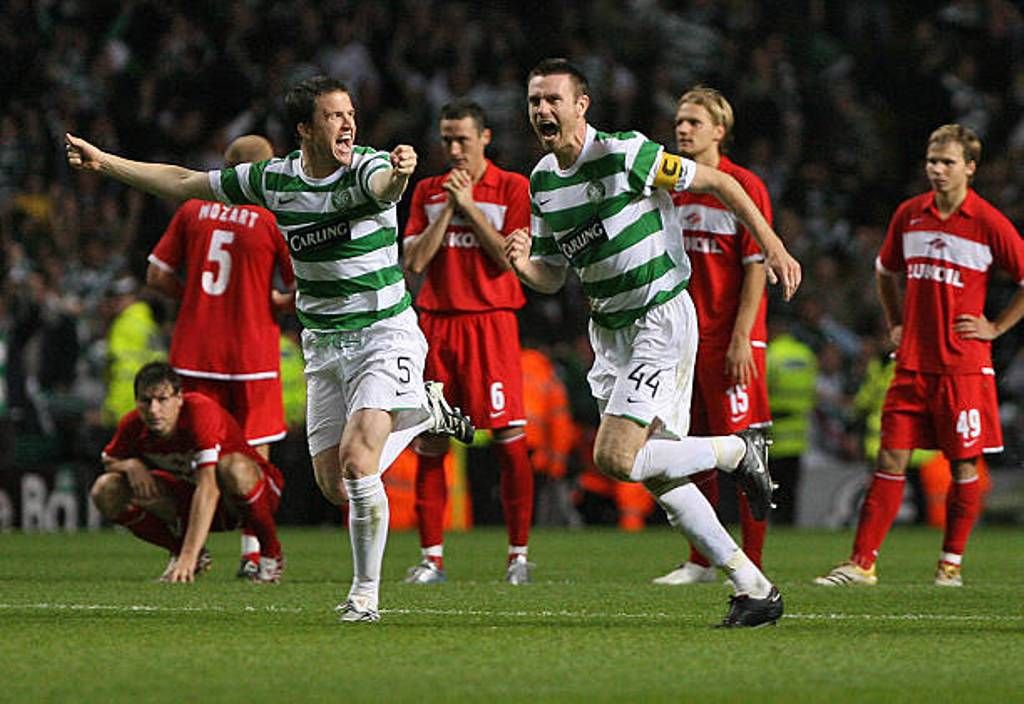 Celtic qualify for the Group Stages of the European Champions League in a dramatic penalty shoot-out against Spartak Moscow. Artur Boruc saves the vital penalty kick. This follows a 1-1 draw at Celtic Park, watched by 57,644 in which Scott McDonald put Celtic ahead before the Russians equalized. The first leg in Moscow was also 1-1.