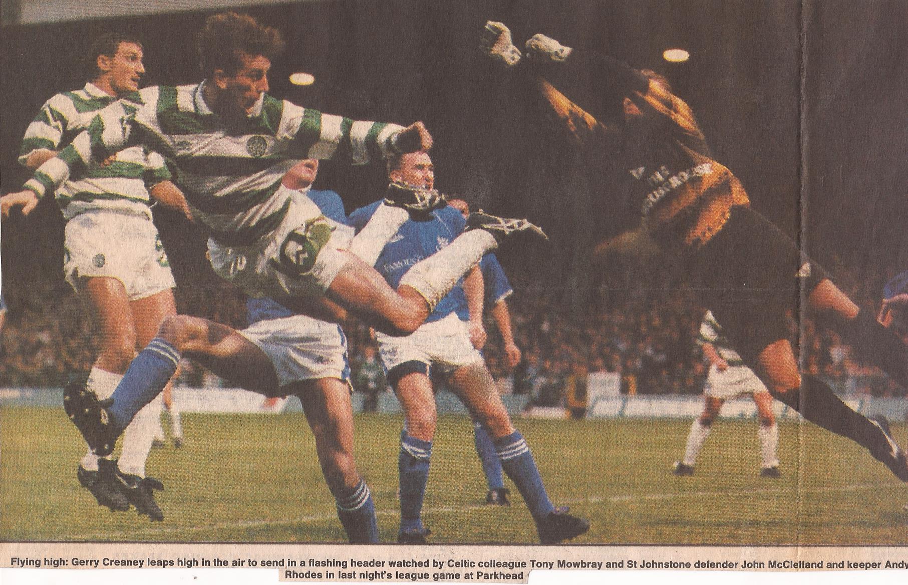 A good win for Liam Brady’s Celtic as they beat St Johnstone 3-1 at Parkhead with two goals from John Collins and one from Gerry Creaney. 21,831 are in attendance.