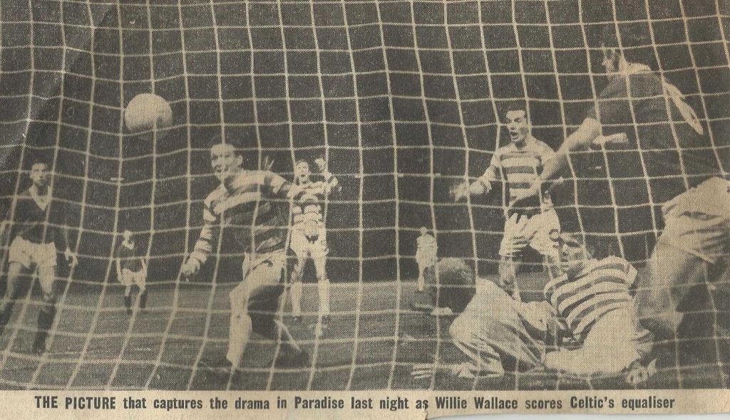 The famous night of “The Fugitive” – the last night of the long running serial on the television, but it was no more dramatic than the game at Parkhead which saw Rangers 1-0 up and awarded a penalty kick which was missed by Kai Johansen, then Celtic ran up and scored three goals from Willie Wallace, Bobby Murdoch and Bobby Lennox. Celtic thus qualified for the Scottish League Cup quarter finals.