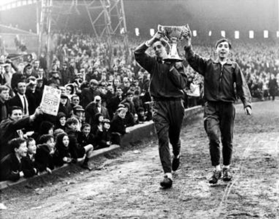 Heady days at Celtic Park with the Scottish League Cup, won last week, paraded at half-time. Today Stirling Albion are clearly overwhelmed by the occasion, and Celtic win comfortably 6-1 with a hat-trick from John Hughes, two from Joe McBride and one from Bobby Murdoch.