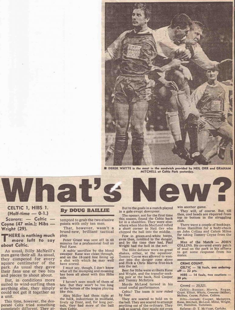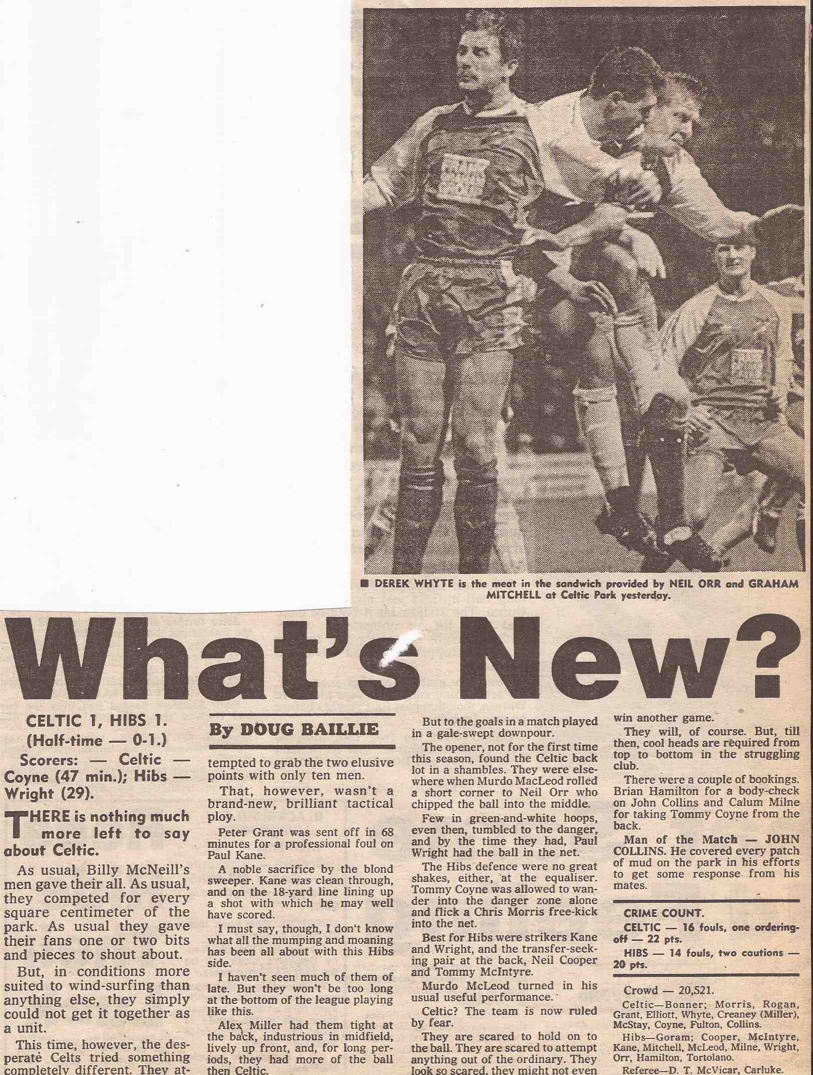 SATURDAY 5 JANUARY 1991 – Celtic’s dismal run of form continues with a poor draw against Hibs at Celtic Park today. It is a typical Celtic performance following a defeat by Rangers with everyone so depressed that they cannot raise their game for the next match. The crowd of 20,521 leave very unhappy with a few mutterings beginning to be heard about Billy McNeill as a Manager. Tommy Coyne scores Celtic’s only goal in a 1-1 draw, and Peter Grant is sent off for a “professional foul”.