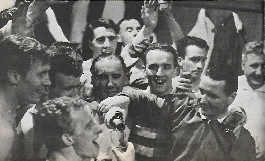 SATURDAY 7th MAY 1966 – Words like “freedom” and “deliverance” are clearly heard today at Fir Park, Motherwell as Celtic at long last win the Scottish League for the first time in 12 years. All that was really required was not to lose 1-4, but in fact Celtic won 1-0 thanks to a late Bobby Lennox goal. It was in fact a dreadful game of football, but who was caring?