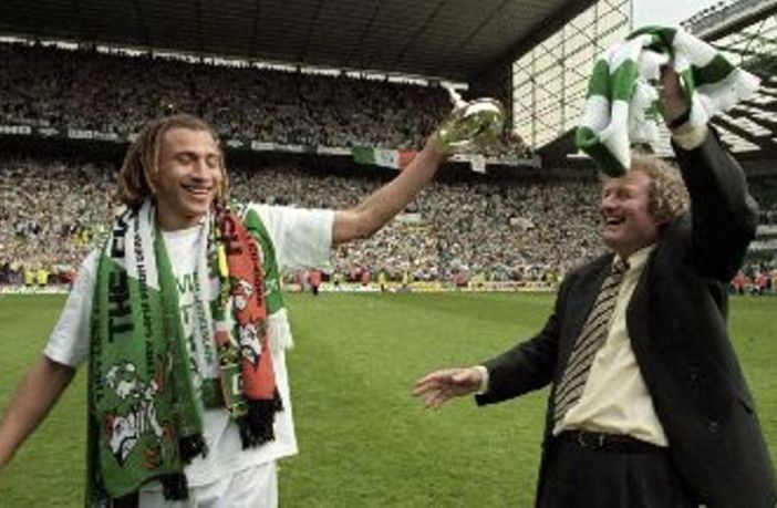 SATURDAY 9th MAY 1998 – 49,702 are present at a packed Parkhead to see the return of the Scottish League championship for the first time in a decade as Celtic defeat St.Johnstone 2-0 with an early goal from Henrik Larsson and the eventual clincher from Harald Brattbakk. The atmosphere is incredibly tense, for Rangers are winning at Dundee United, and the scenes at the end are not so much ecstasy as relief.