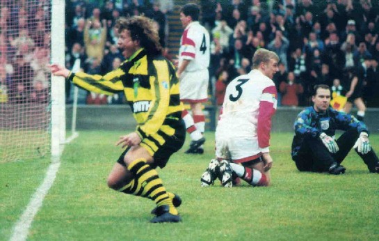 Clydebank 0-5 Celtic. This Scottish Cup third round tie was played at Firhill. Bankies were playing their home games at Dumbarton’s Boghead having sold their ground to developers to stave off increasing debts. Boghead did not meet SFA requirements for Category A games hence the switch of venue. Cadete x2, MacKay, Van Hooijdonk and Di Canio were all on the scoresheet as Tommy Burns’ side swept aside the part-timers.
