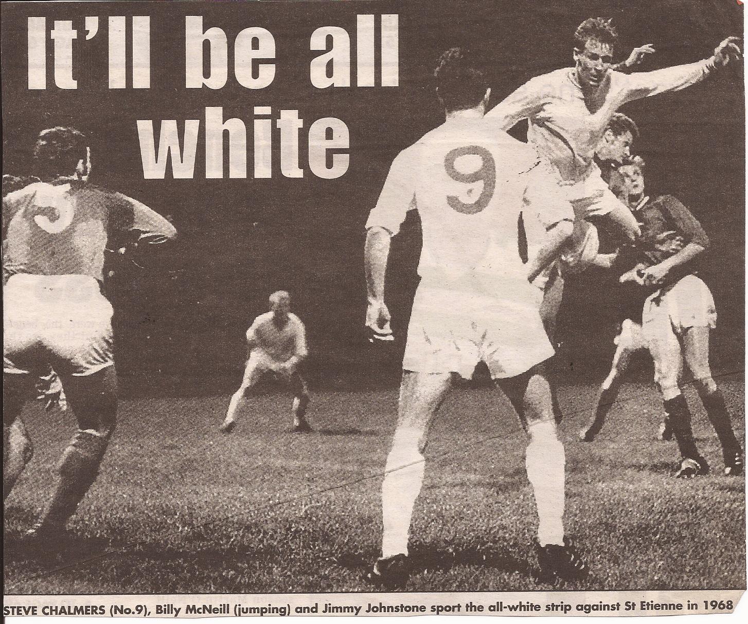 2 October 1968, Celtic 4-0 St Etienne. Jock Stein’s side overturned a 2-0 deficit following a shock defeat in France. It was 15 months since Celtic’s immortal win in Lisbon, all the talk was about if the Hoops could reclaim the trophy they had lost in the 67/68 season. Celtic did not wear their home strip and instead wore an all white strip which was specially designed for this game. Gemmell, Craig, Chalmers and McBride were all on target. Jim Brogan, Joe McBride and Yogi Hughes were the three players who played in the match who did not start in Lisbon. After the game, St Etienne captain Robert Herbin described the noise of the 75,000 Celtic fans as “howling banshees.” Serbian side Red Star Belgrade awaited Celtic in the next round.