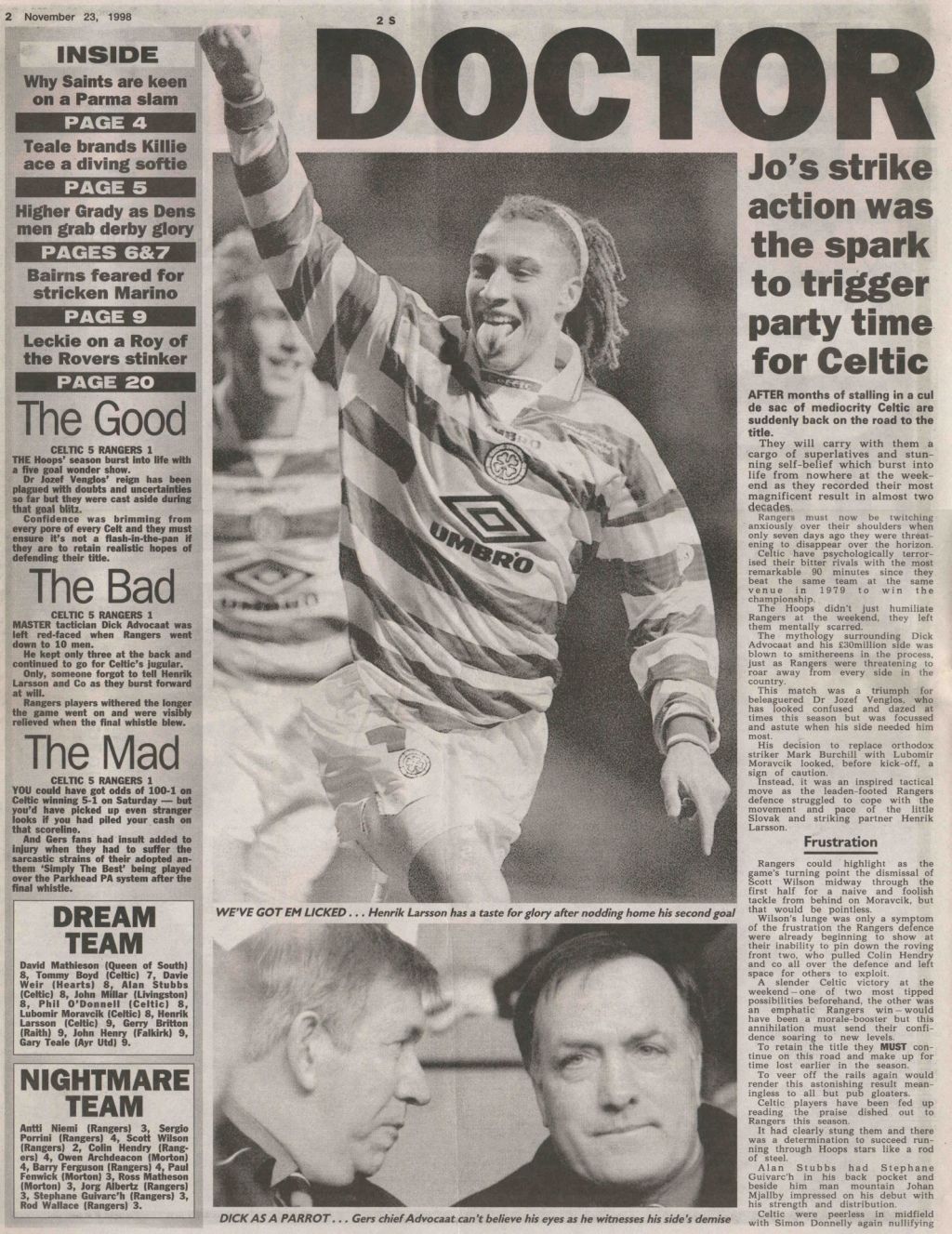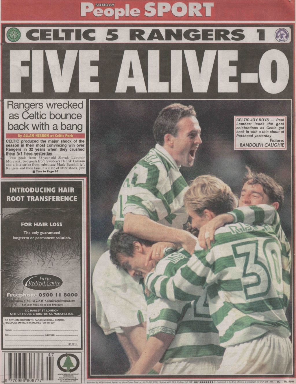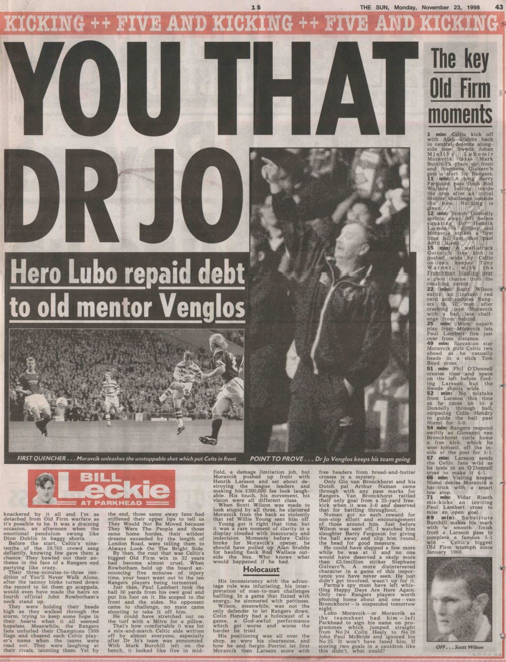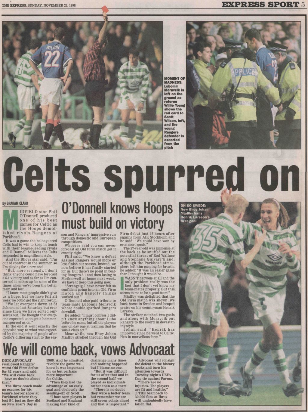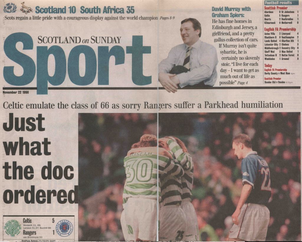 Celtic on this Day in 1998, Celtic 5-1 Rangers…Here’s what the papers said…