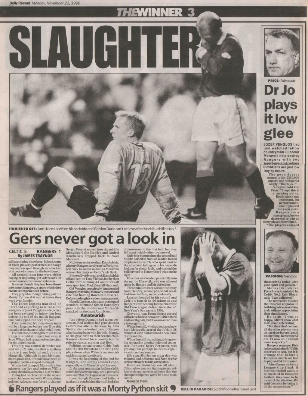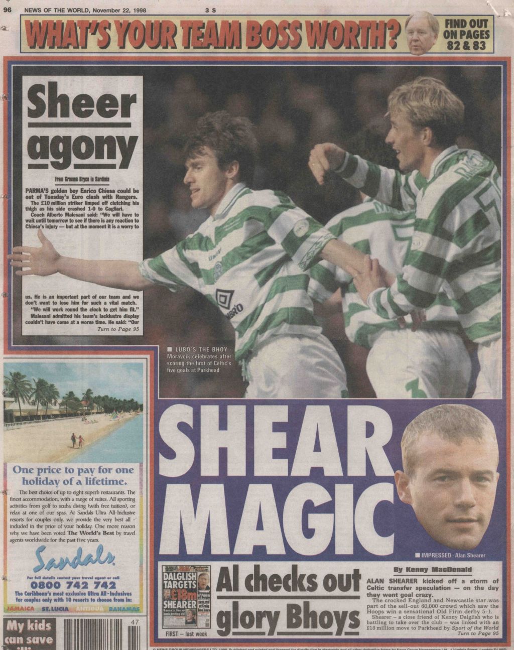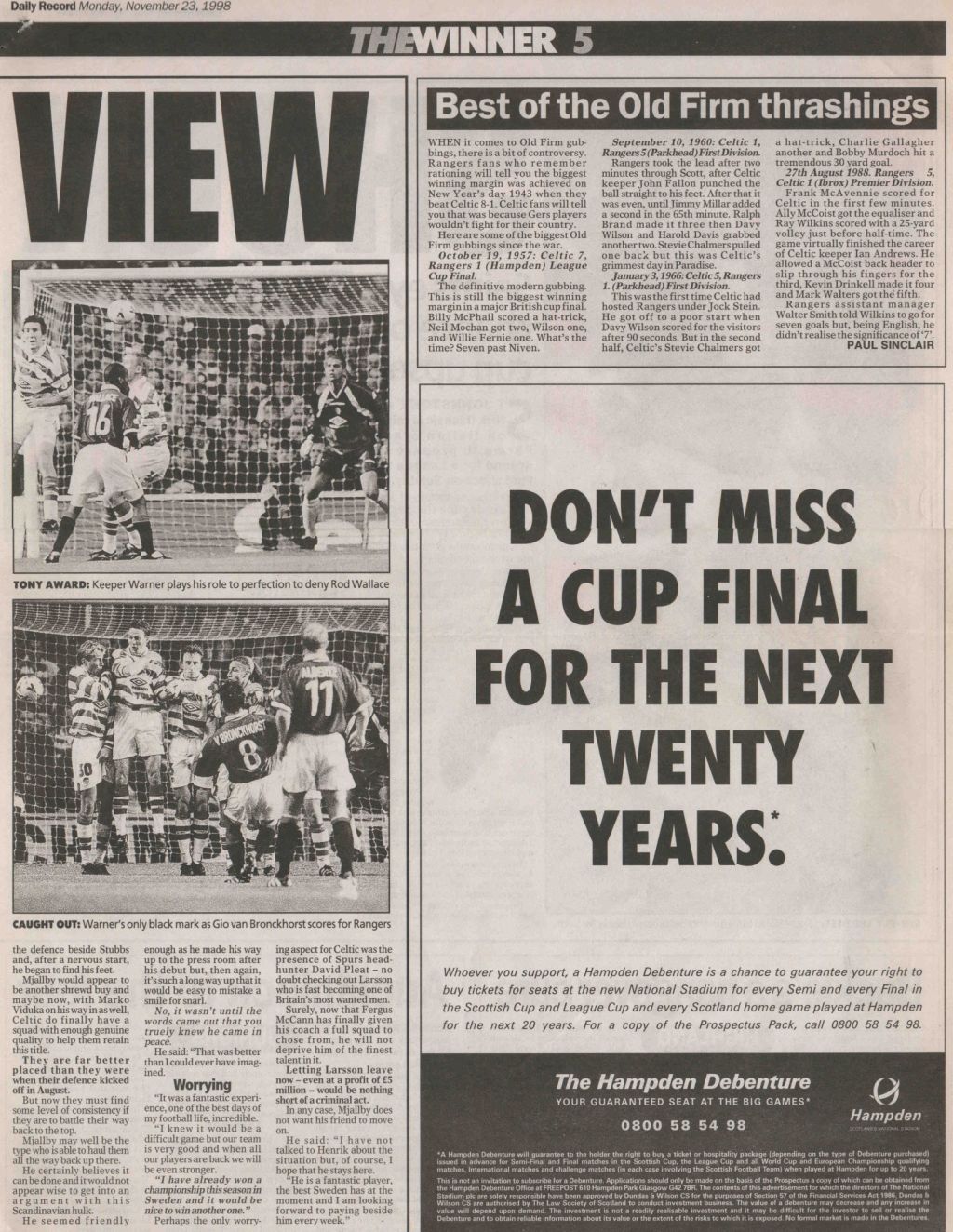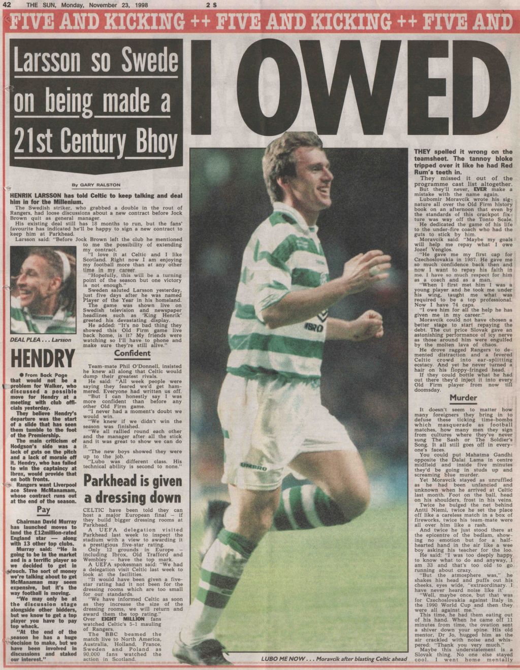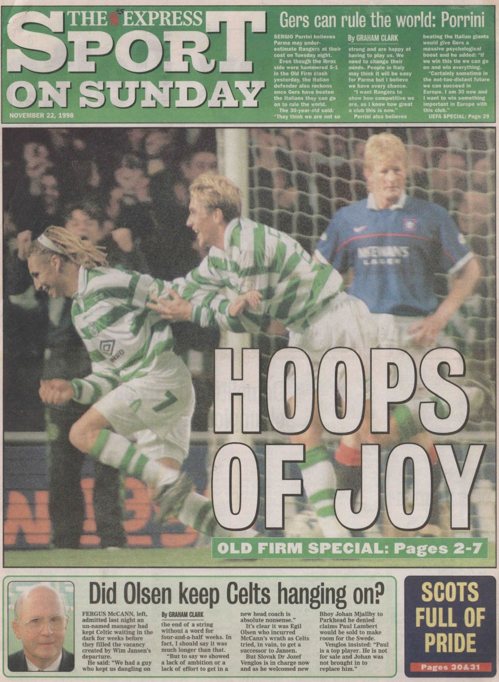 Celtic on this Day in 1998, Celtic 5-1 Rangers…Here’s what the papers said…