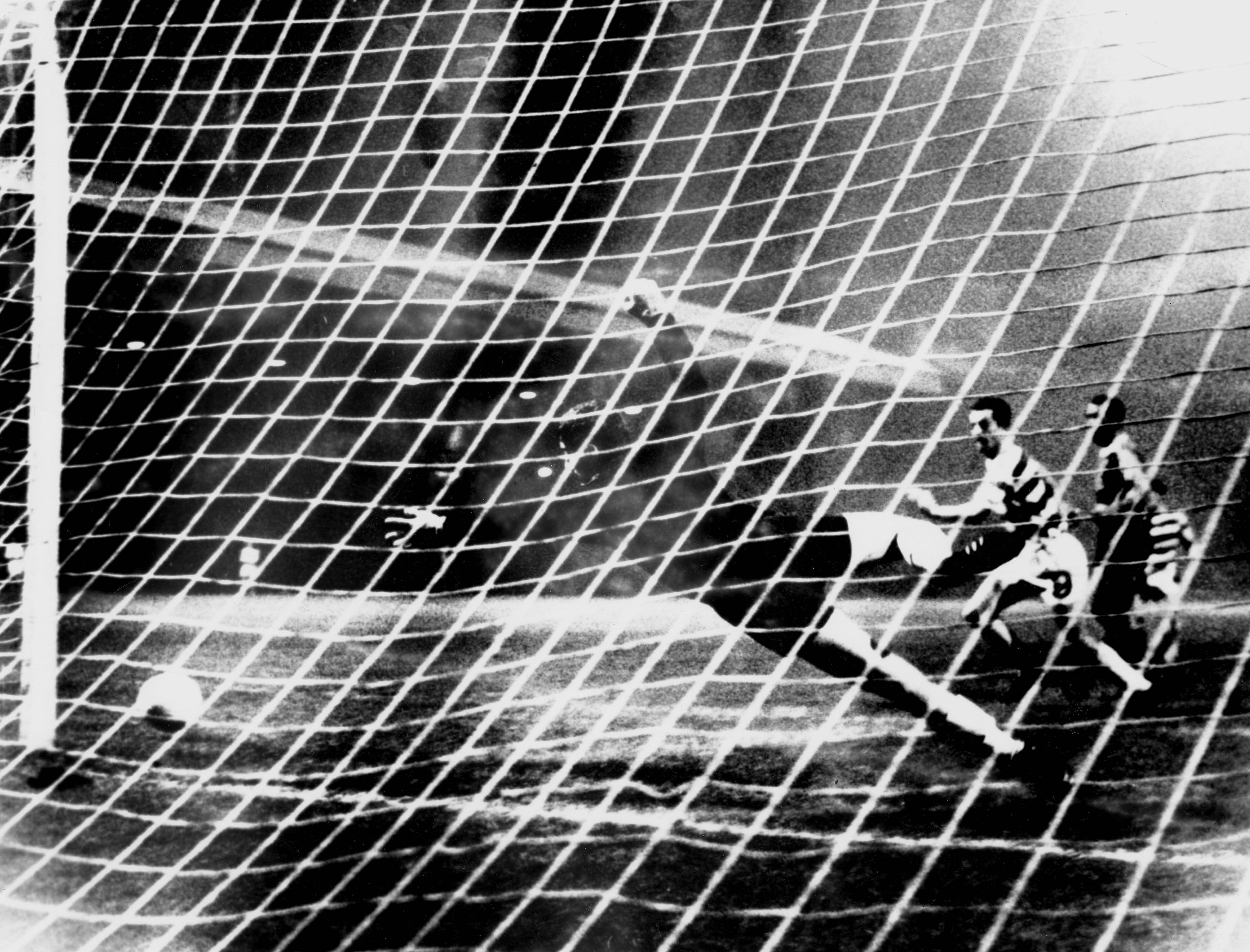 28.09.1966. imago/United Archives International First Leg European Cup Match Celtic v Zurich A drive by Tommy Gemmell goes just inches past the post with Zurich goalkeeper, Itan well stretched out and Stevie Chalmers rushing in. 28th September 1966.