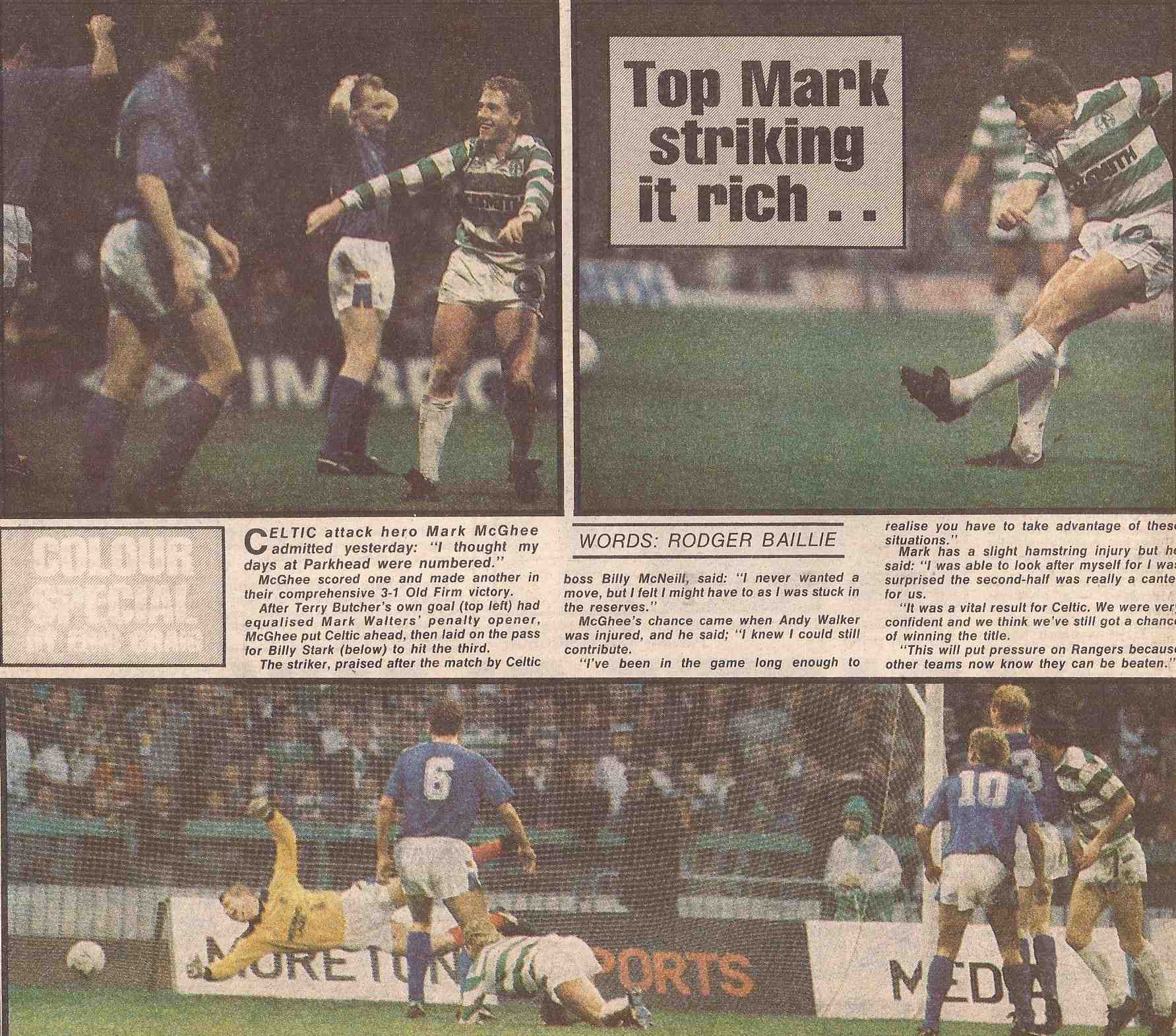 Celtic 3 Rangers 1 – 12th November 1988. Press cutting.