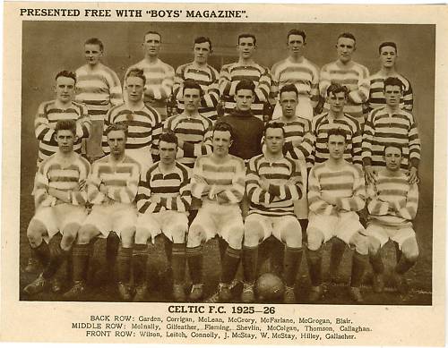 But in 1924 he established himself as Celtic’s right half and very soon the fans saw some marvellous passing ability. “Peter Wilson didn’t pass the ball, he stroked it and caressed it” and he won four Scottish Cup medals in 1925, 1927, 1931 and 1933 as well as being part of that wonderful team that won the Scottish League in 1926.