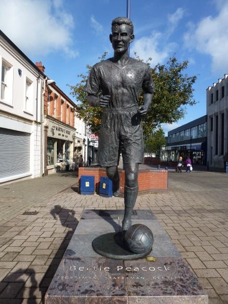 Bertie Peacock had been honoured with an MBE award in 1986 for his services to football but was given lasting recognition after his death with the statue unveiled in his hometown in 2007.