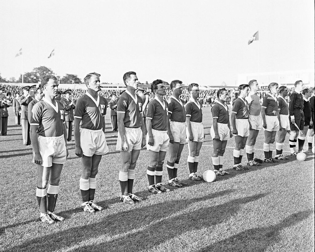 World Cup 1958 Malmö 15 06 1958 The Team from Northern Ireland with Harry Gregg Willie Cunningham Alf McMichael Thick Keith Danny Blanchflower Bertie Peacock Billy Bingham Wilbur Cush Jimmy McIlroy Peter McParland Tommy Casey