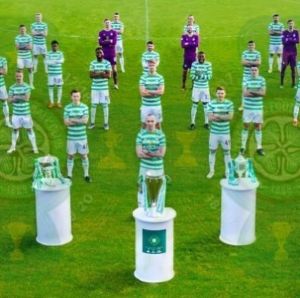 “In a tribute to a very famous image from Jock Stein’s golden era at Celtic, today’s photograph features the current squad who clinched this most memorable of achievements on Sunday and in doing so, yet another Celtic first.