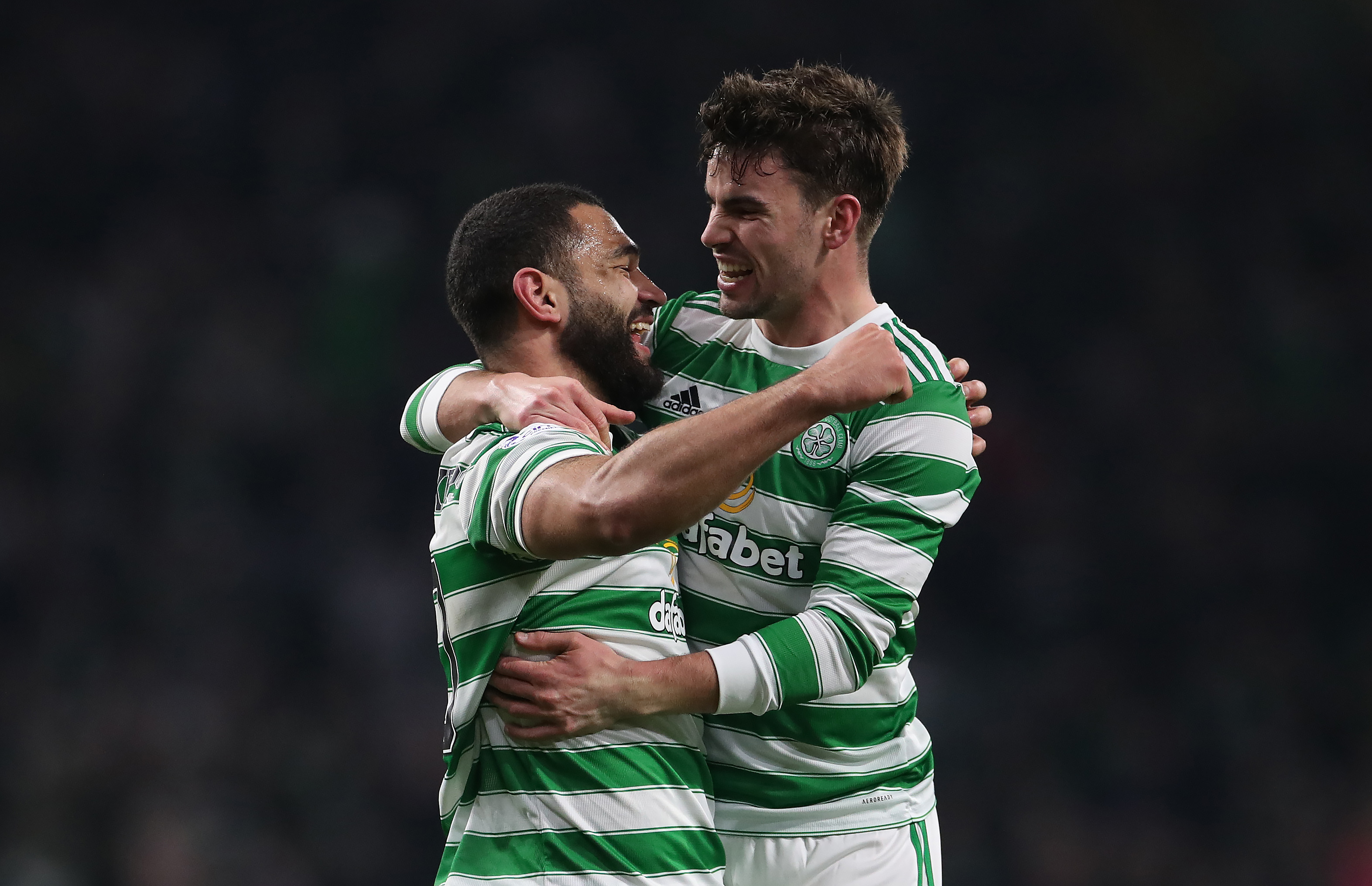 Cameron Carter-Vickers celebrates with teammate Matt O’Riley (Photo by Ian MacNicol/Getty Images)