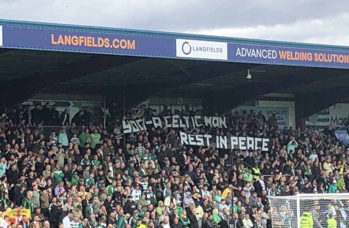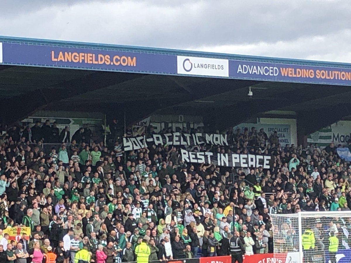 God bless Big Yogi and let’s get the three points today Bhoys on the day the supporters remember the Lisbon Lion and club legend and the Celtic players and staff wore black armbands in memory of John Hughes.