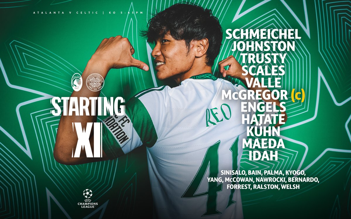Here’s how we line up in Italy! 🔢 #AtalantaCeltic | #UCL🍀 pic.twitter.com/aBjGiy849b