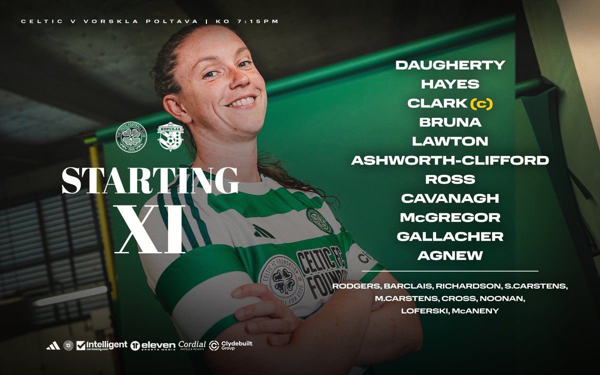 On the bench for Celtic this evening are Rodgers, Barclais, Richardson, S.Carstens, M.Carstens,, Cross, Noonan, Loferski and McAneny.