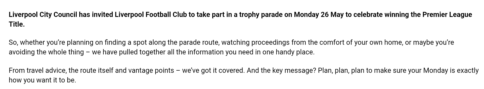 1. We want supporters of every team in Glasgow to be able to celebrate their successes but ask fans – including those visiting the city – to please avoid disruptive mass gatherings at Merchant City / Trongate and other public places.