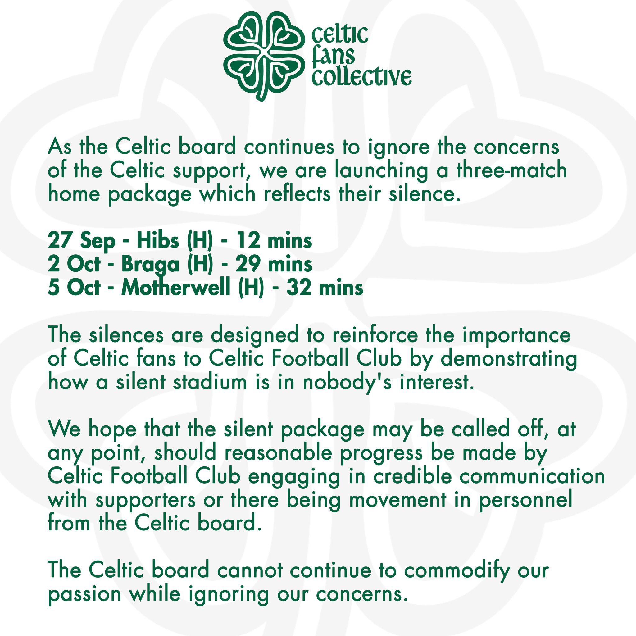In case you are unaware, there’s a one minute silent protest today on the 12th minute which will quieten the Celtic support for just 60 seconds with those not taking part able o make their own noise for the Bhoys and it will also give the Hibs fans a chance to be heard.