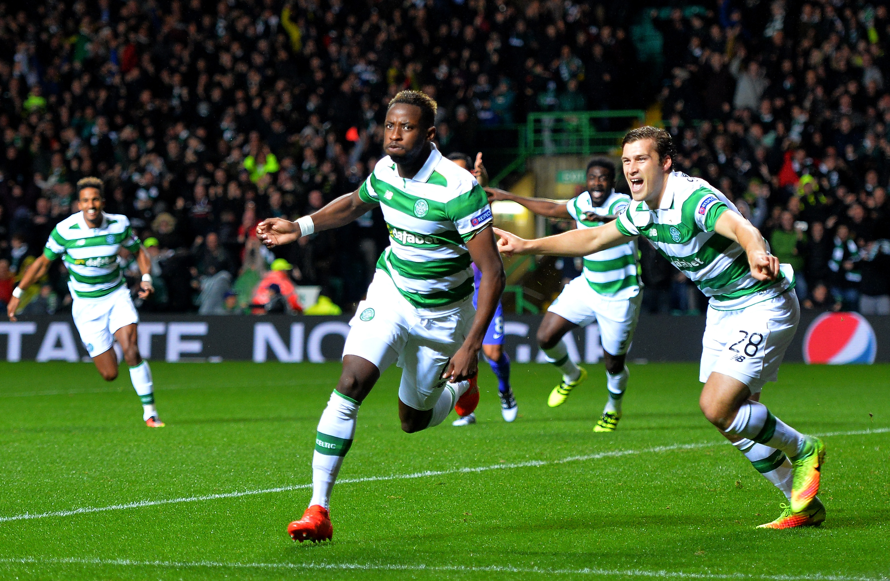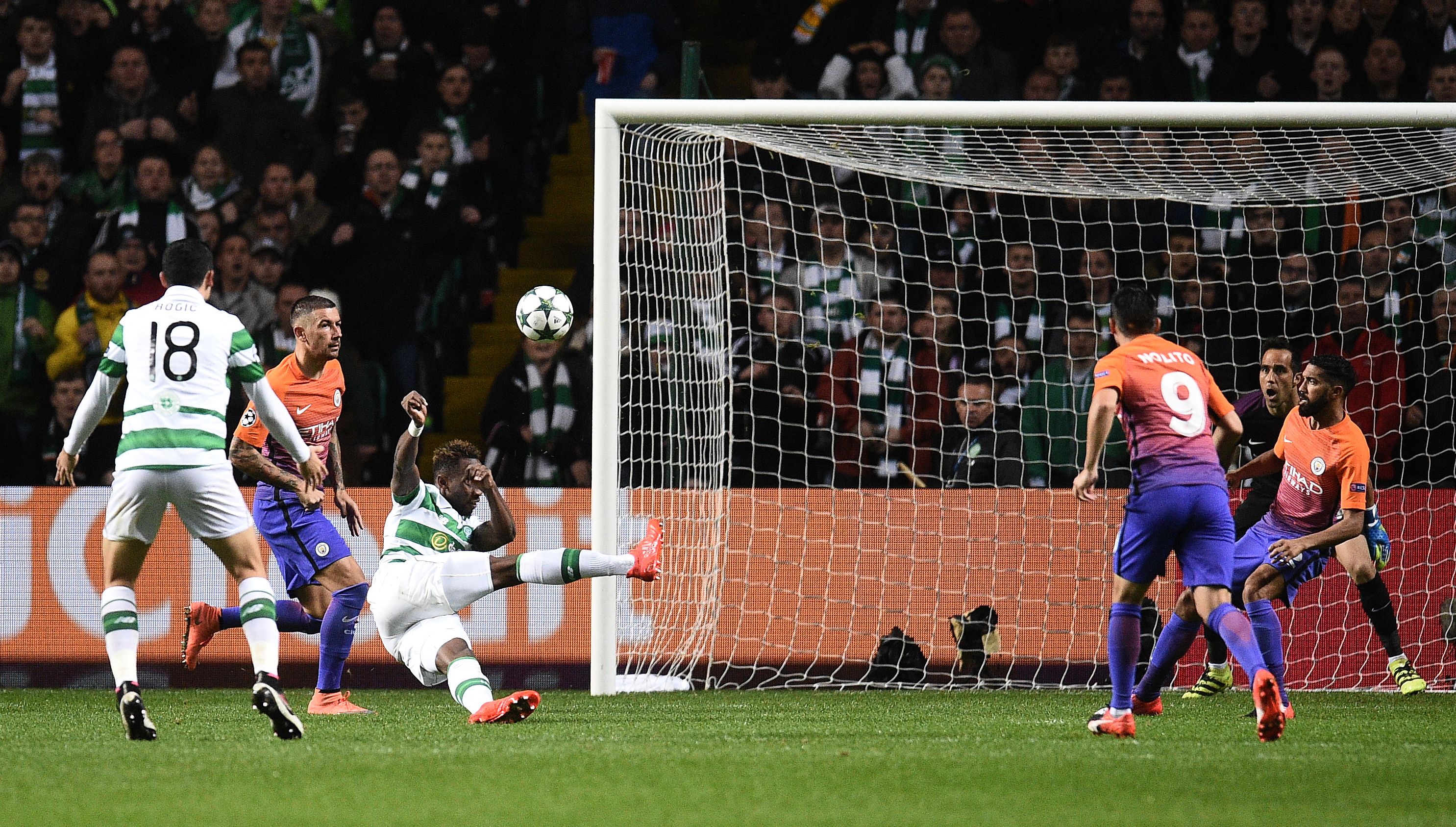 Moussa Dembele celebrates after scoring the opening goal during the UEFA Champions League match between Celtic and Manchester City at Celtic Park on September 28, 2016. (Photo by Mark Runnacles/Getty Images)
