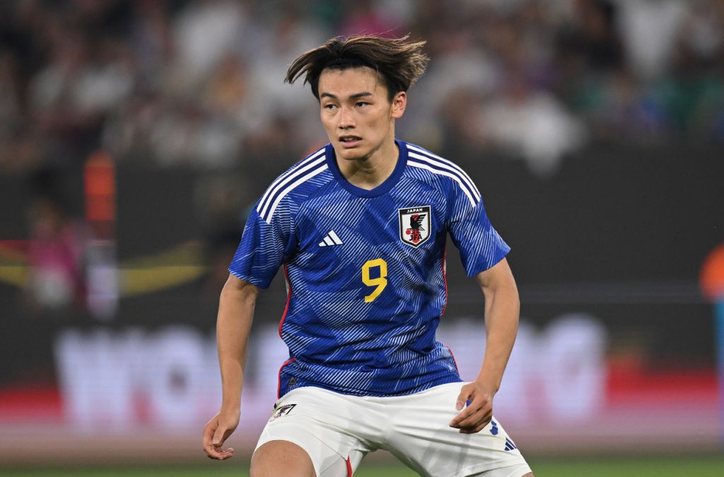 Ayase Ueda of Japan in action during the international friendly match between Germany and Japan at Volkswagen Arena on September 09, 2023 in Wolfsburg, Germany. (Photo by Stuart Franklin/Getty Images)
