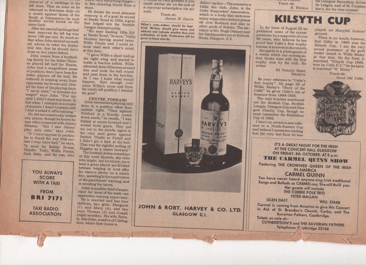 “Well done, Celtic Crusaders, for winning the Kilsyth Charity Cup and gold badges on Saturday last. The cup and badges will be presented to the winners on Friday at Kilsyth. The best thanks of the team is due to the secretary of the Crusaders for bringing this cup to Celtic Park.”