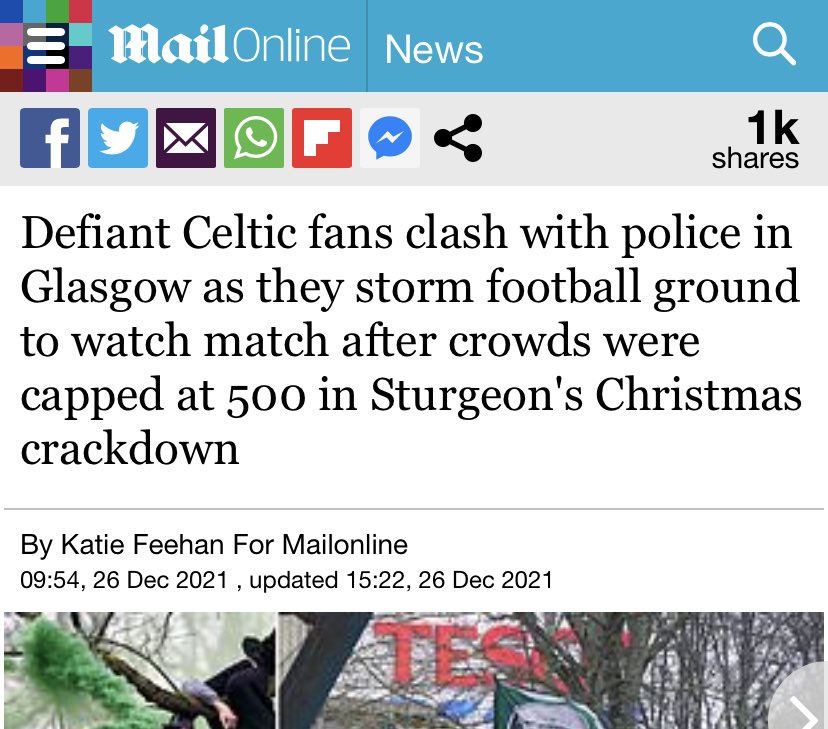After the Scottish Government’s decision to effectively put games behind closed doors, what would have been a sell-out Celtic end were forced to watch on screens. Although, The Bhoys were in fine voice despite being accused of attempting to break into the stadium. Police were present but there were no issues with the small gathering.